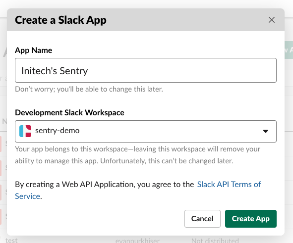 To use Sentry’s Slack integration you’ll need to create a Slack app. Navigate to Your Apps and click Create New App.